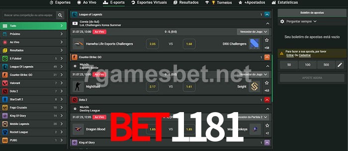 O Bet1181 oferece uma grande seleção de opções de apostas em e-sports com probabilidades competitivas